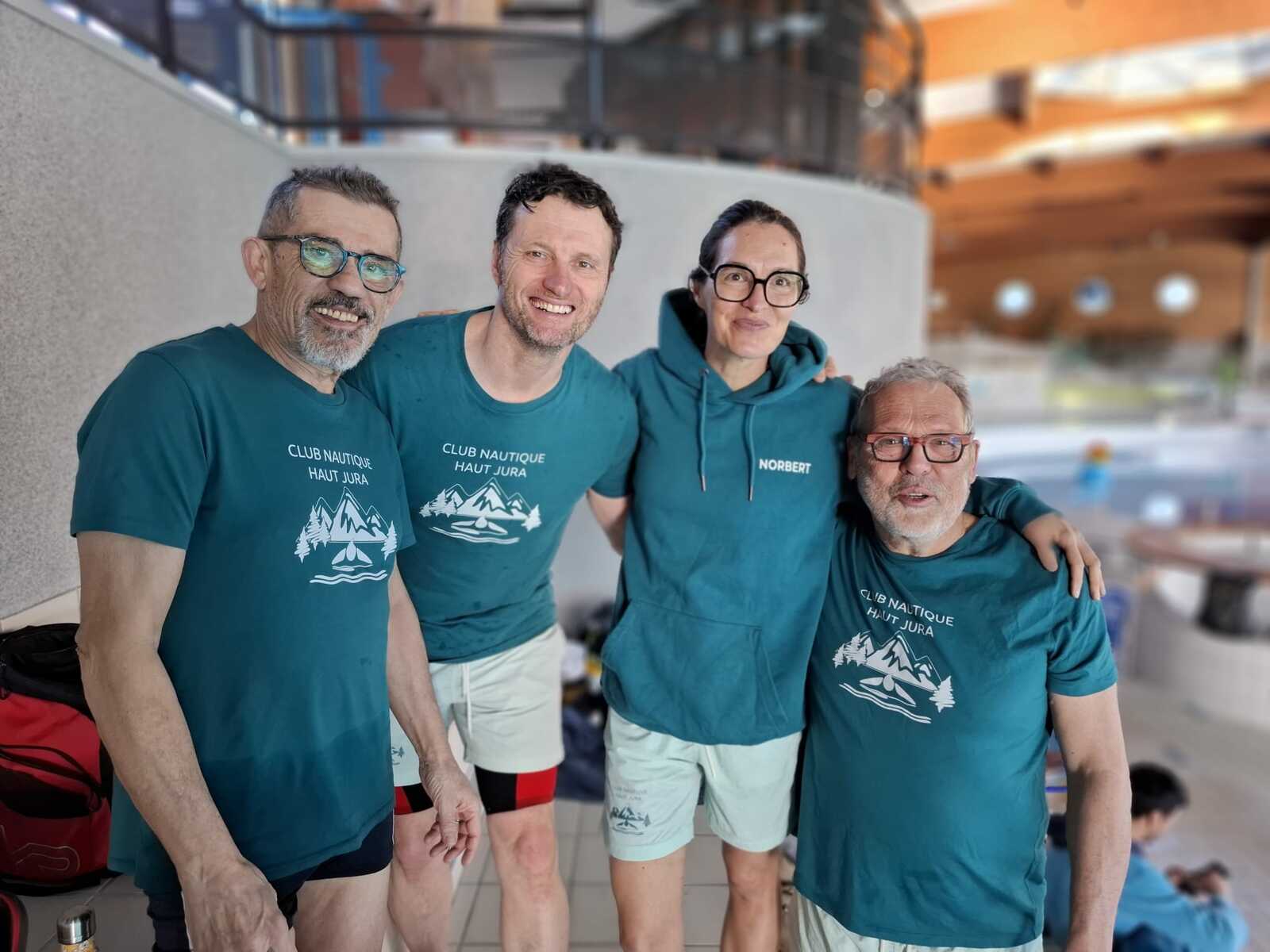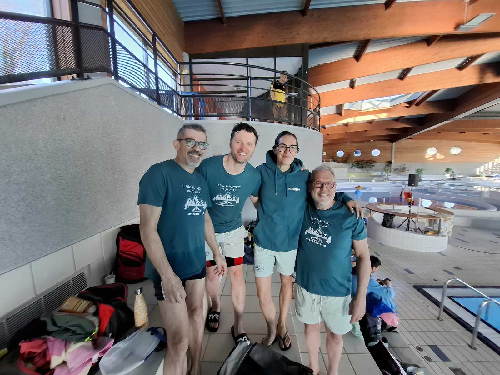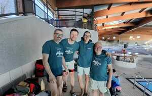) par notre équipe composée de Norbert Marchal pour le dos, Patrick Borgeais pour la brasse, Marie Marchal pour le papillon et Marc Simon pour le crawl.