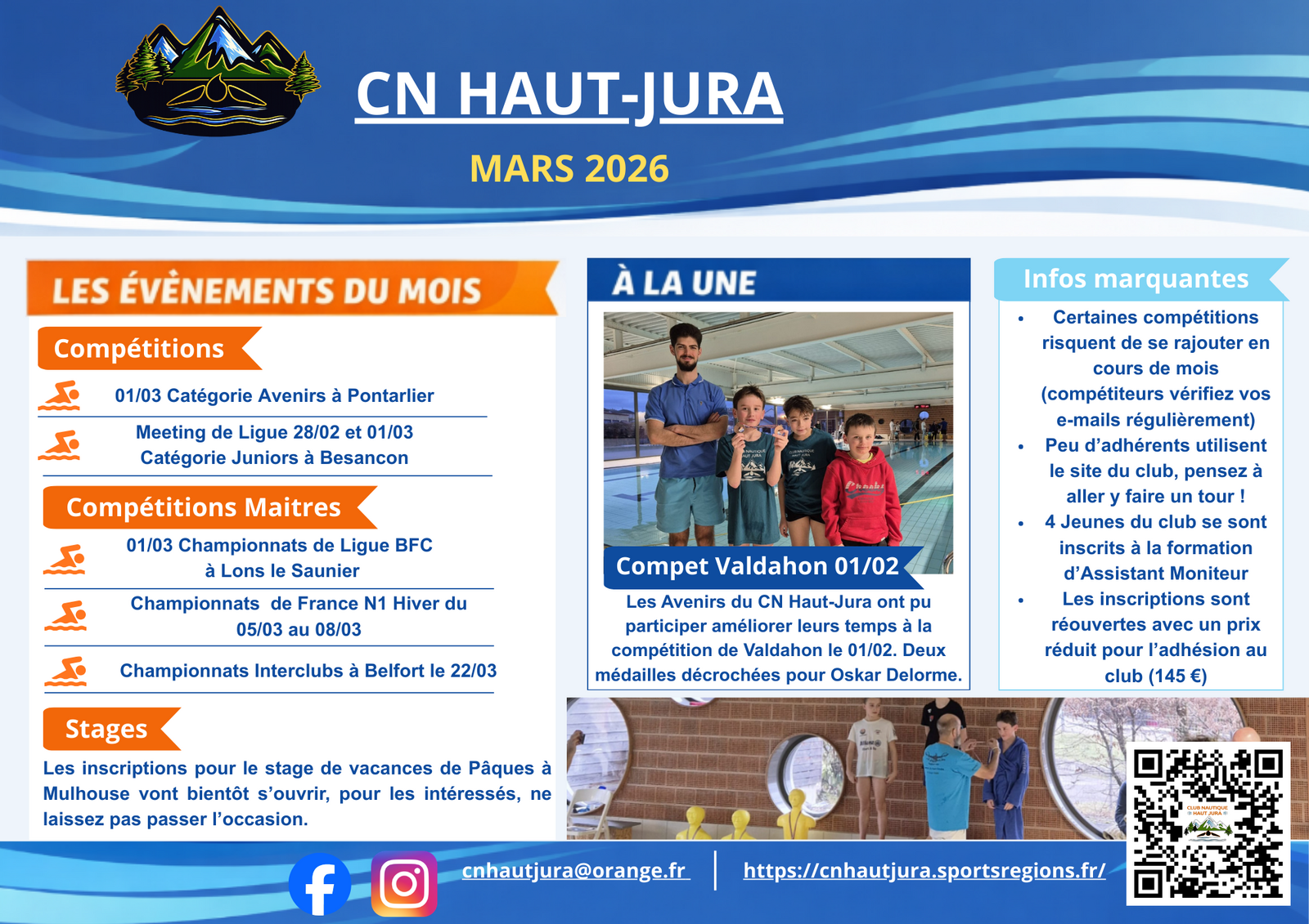 Club de natation du Haut Jura : Patrick Borgeais succède à Norbert Marchal