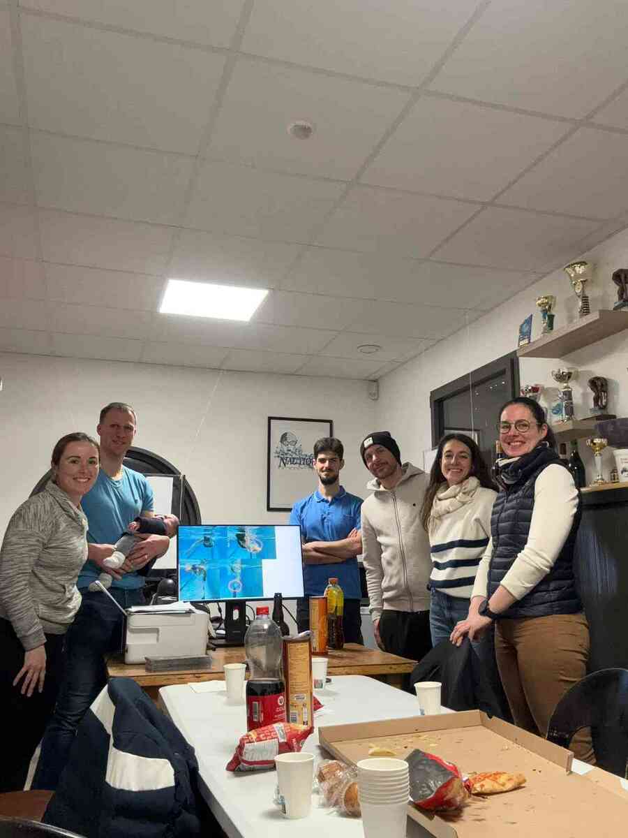 Pour la première fois cette année, le club de Triathlon s'est entrainé en commun avec le CNHJ pendant ce stage et ont pu participer à une session d'analyse vidéo où chacun a pu se voir nager en crawl de profil et de face.